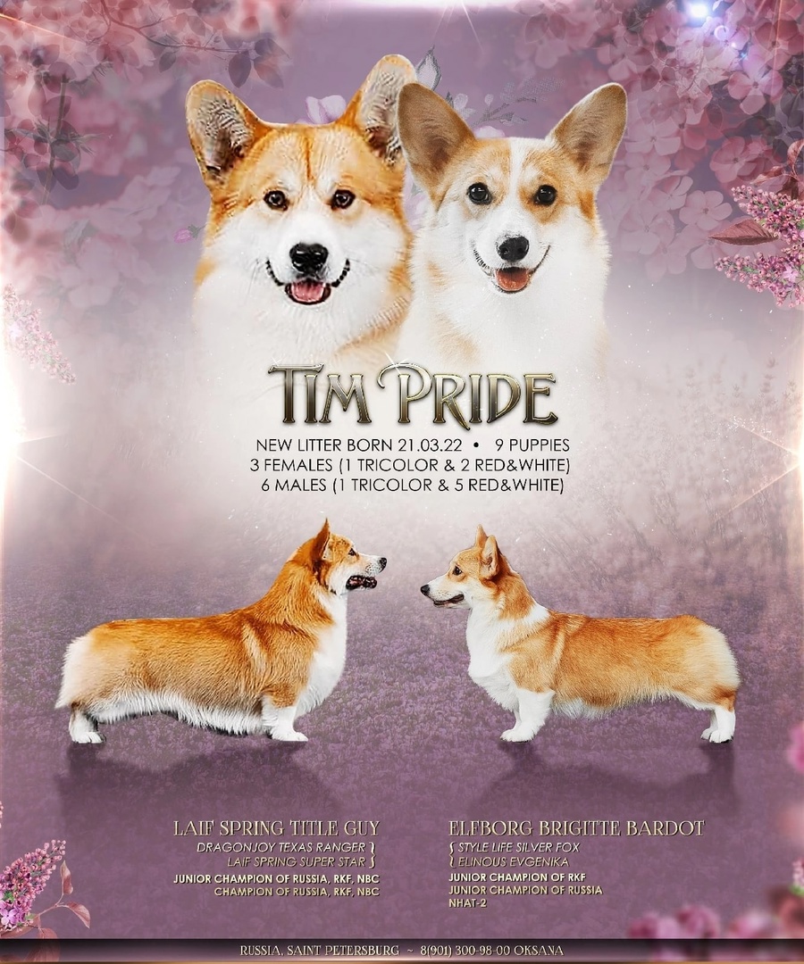 Kennel ТIM PRIDE💕 Санкт-Петербург. Щенки вельш корги пемброка. Девочки само очарование 💃 Очень умные, смышленые, контактные. Любят играть, целовашки и обнимашки❤ Готовы и в пир💮 и в мир💮. Хоть на выставку🏆 хоть в поход🐕‍🦺. Только бы быть рядом с любимым хозяином🤩 Прекрасное происхождение и психика в приданое. Одно удовольствие общаться с такими щенками. 3 суки (2 триколор, 1 рыже-белая) Отец 💥LAIF SPRING TITLE GUY💥 ЮЧР, ЮЧРКФ, ЮЧНКП, ЧР, ЧРКФ, ЧНКП. Мать: ELFBORG BRIGITTE BARDOT ( Style Life Silver Fox *ELINOUS EVGENIKA ) Чемпион России, Юный Чемпион РКФ. ТПИ2 Щенки с документами РКФ, полностью привиты, начали социализацию ,имеют клеймо, ветпаспорт, договор. Подарки и скидки на корма , помощь питомника по Всем вопросам.